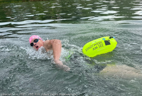 29 Schwimmer*innen, 4 Boote und 4 Stand-up-Paddleboards starteten am Samstag, den 30.07.2022 um 7:48 Uhr im Wallhausener Strandbad zum Seeschwimmen der DLRG Bezirksjugend Bodenseekreis. Bereits um 08:27 Uhr schwamm der erste Schwimmer in Überlingen ins Ziel und legte die ca. 2,5km lange Strecke somit in 39 Minuten zurück. Nach ungefähr 2 Stunden kamen dann auch die letzten Schwimmer*innen in Überlingen an und konnten sich mit Bananen, Butterbrezeln und Getränken stärken. Unser Dank geht an alle Schwimmer*innen, die an unserem ersten Seeschwimmen teilgenommen haben, aber auch an die Einsatzkräfte des Bezirk Bodenseekreis, die für die Absicherung des Seeschwimmens sorgten. Auch für 2023 haben wir wieder ein Seeschwimmen geplant und würden uns freuen wieder zahlreiche Teilnehmer beg ... Mehr erfahren